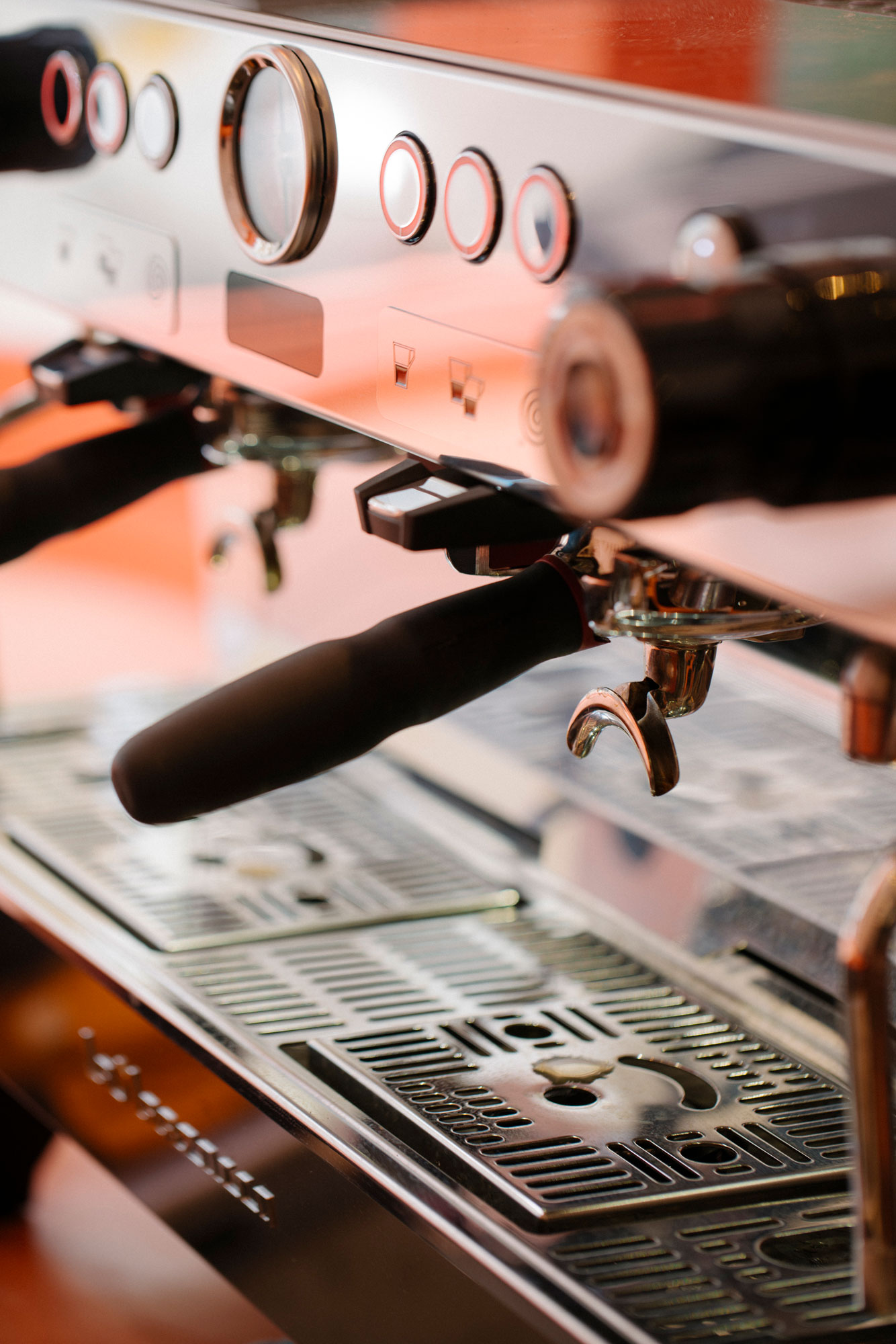 The bright coral-fluted façade treatment curving around the shopfront and an undulating awning make sure Cona stands out on the street. The serving counter starts from the outside, drawing customers through the space while an intricately designed servery window folds open to engage the surrounding streetscape, attracting valuable passing trade.