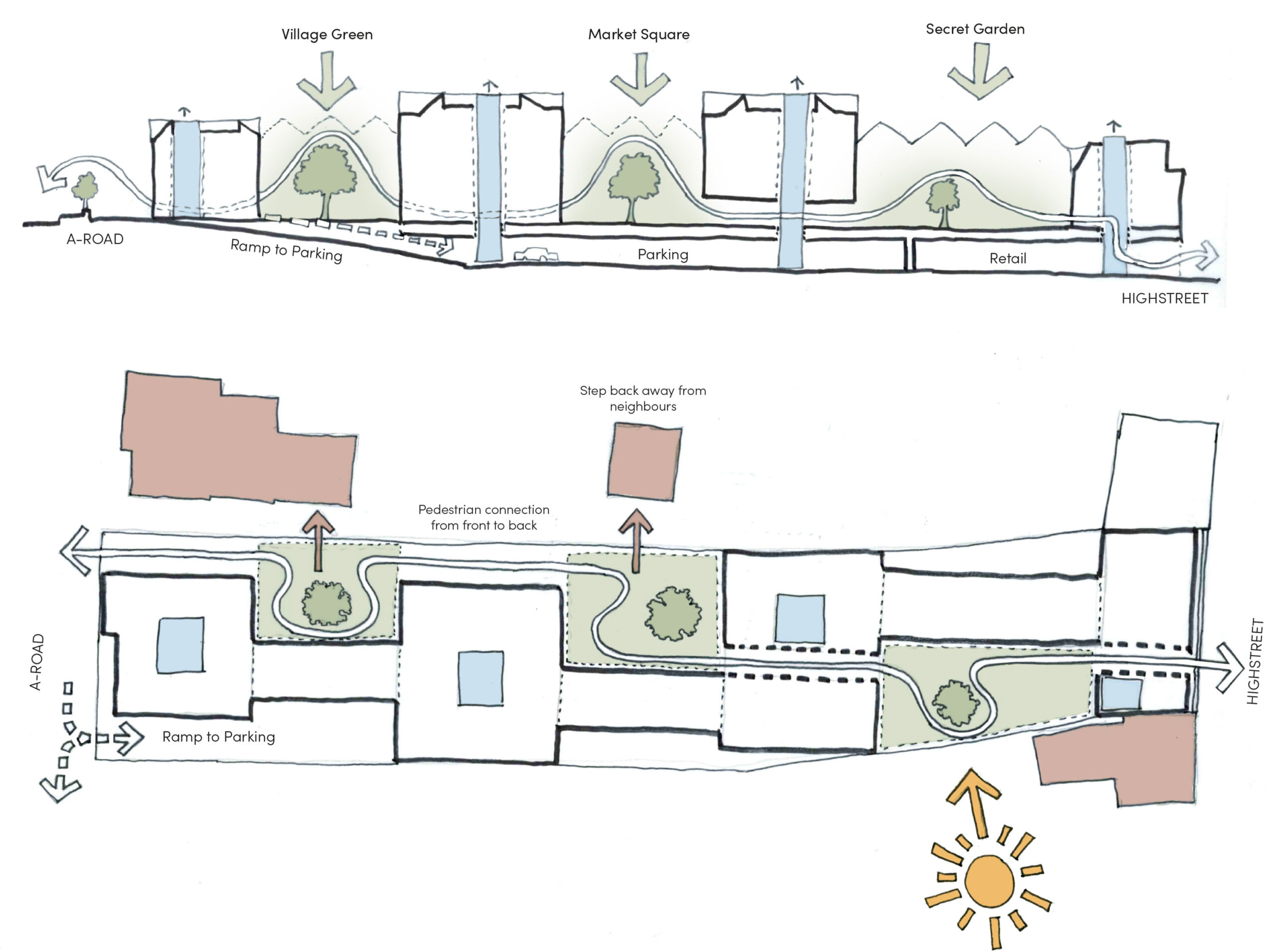 We believe our approach and vision for a more human centric approach to town centre living could be in many ways replicated in other opportunity sites with in Hitchin Town centre where the car ( at least over the last 50 years) had evidently dominated how Hitchin developed in the second half of the 20th century. The benefits, we believe, will bring vitality to these historic high streets and help sustain it for the future.