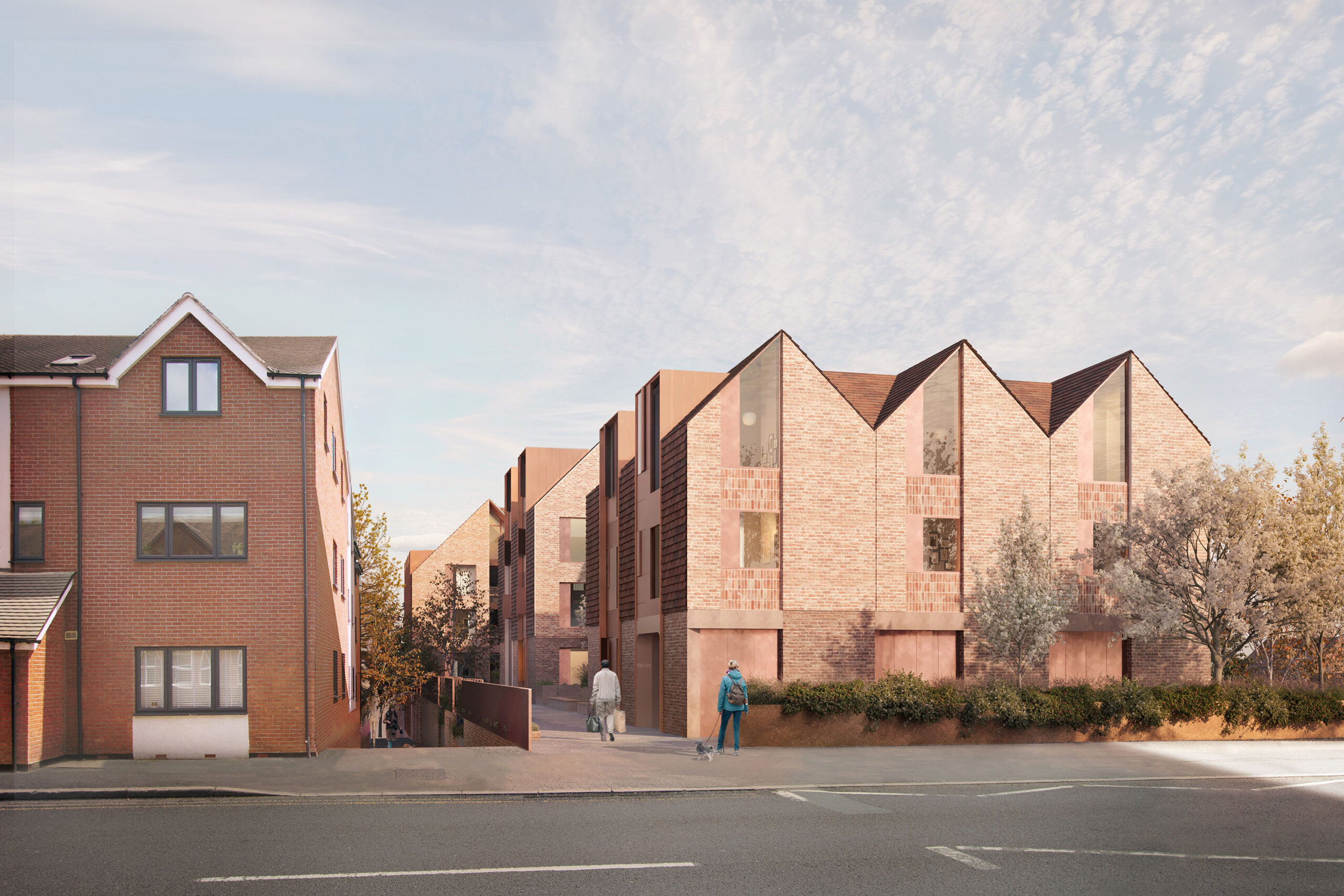 Tigg Coll have summitted for planning a scheme that reimagines a long, linear site in Hitchin town centre. The existing site is dominated by a large double storey Carpark and an underused and outdated 1960s neo Victorian building facing on to the historic high street.